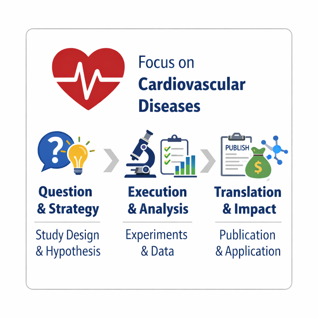I provide integrated cardiovascular research services spanning strategic consulting, experimental execution, advanced training, and scientific review.
